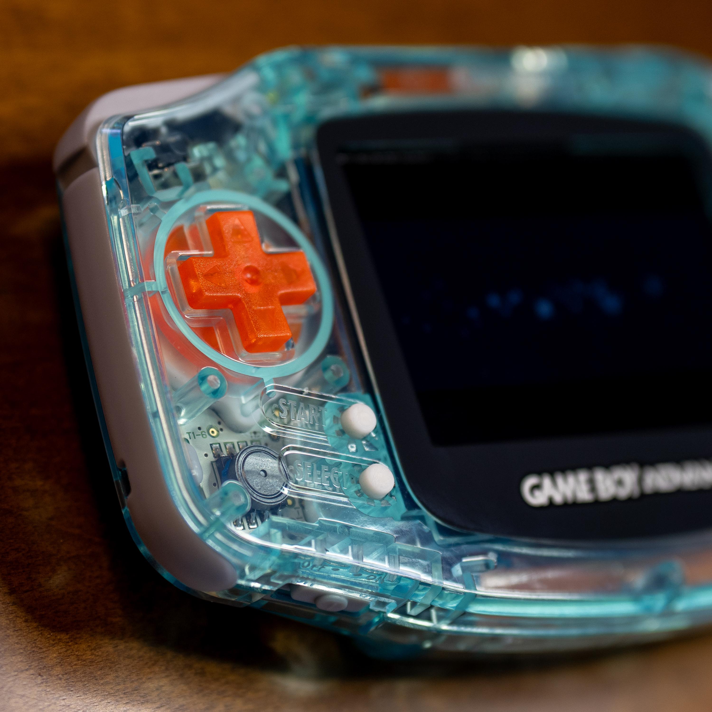 Gameboy Advance Glacier Transparent Modded ips lcd screen bright Orange buttons